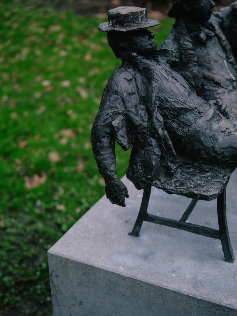 ‘Jongens waren we, maar aardige jongens. We zouden hun wel eens laten zien hoe ’t moest. Alle andere mensen waren ‘‘ze’’. ‘‘Ze’’, die niets snapten en niets zagen.’ Bavinck, Hoyer en Koekebakker zagen het wel, daar op het bankje in het Oosterpark. Op een nonchalante, ietwat arrogante wijze kijken ze naar de mensen die zich hebben onderworpen aan het burgerlijke leven. Dat zou hen nooit overkomen, vandaar hun superieure gevoel. Dat deze gedeelde opvatting verbroedert, valt wel terug te zien aan het standbeeld van de Titaantjes in het Oosterpark. Onderuitgezakt op het bankje, met de handen om elkaars schouder, lijken ze volledig onaantastbaar. Daar zitten ze, de eensgezinde kameraden, de buitenaardse ander te beoordelen.