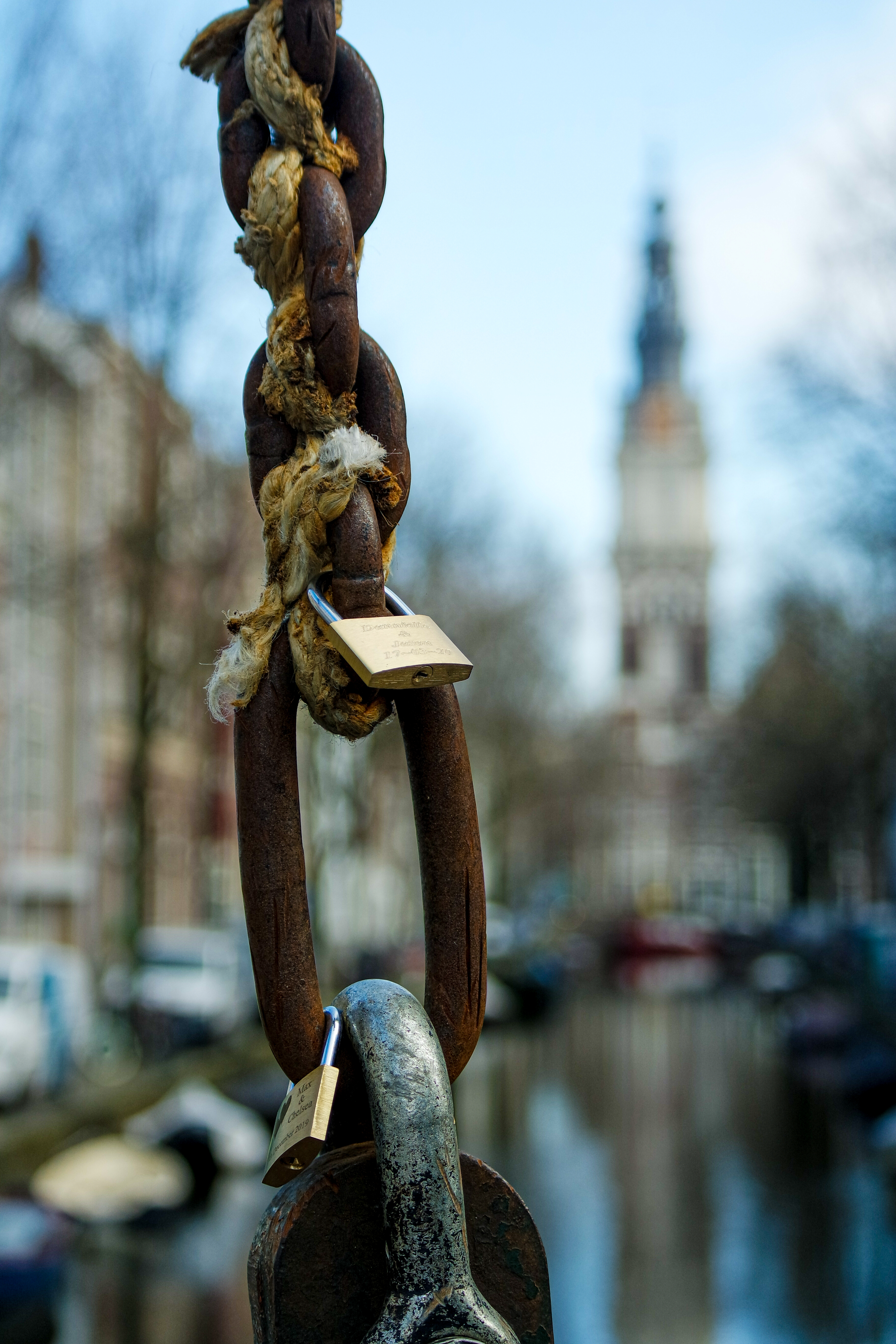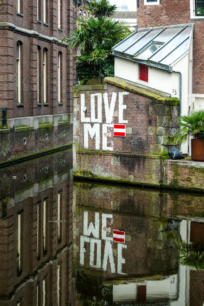 De grachten liggen er pittoresk bij. Geen rondvaartboten van Lovers, geen roeiers, geen sloepen waar Zwettes remix van ‘Another Love’ uit de speakers schalt. Stilte. De Staalmeestersbrug, bekend door het fraaie uitzicht op de Zuiderkerk en de vele liefdesslotjes die aan de tuidraden hangen, is leeg. De liefdesslotjes zijn op een hand te tellen. Ze worden regelmatig verwijderd door de gemeente, maar normaliter hangt de brug toch vol. Nu zijn er natuurlijk geen toeristen om nieuwe slotjes op te hangen. Ik zou het geen geluk bij een ongeluk willen noemen, maar ik denk het stiekem wel.