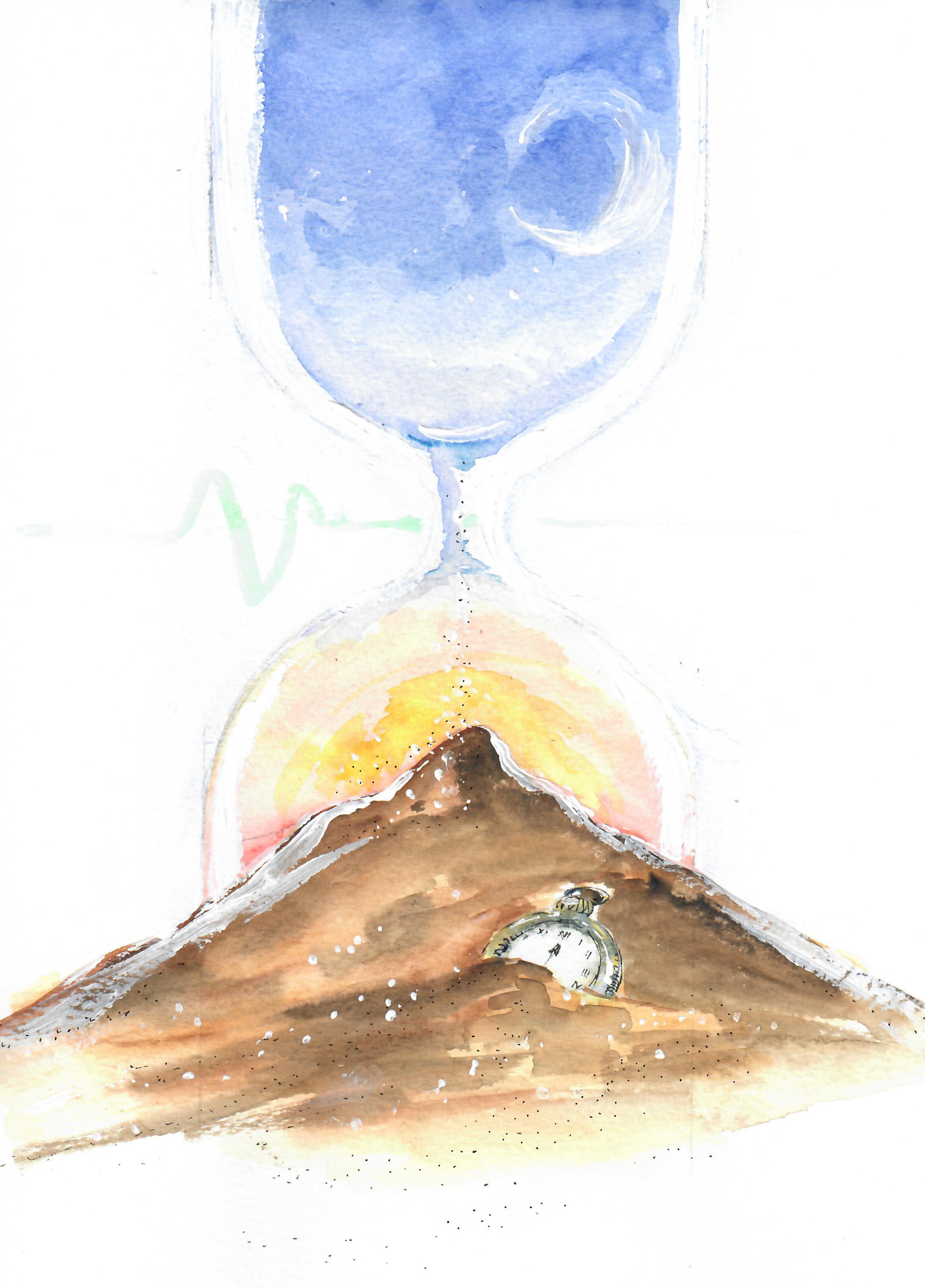 Ze zit voor het raam en ziet zonsopkomst en -ondergang