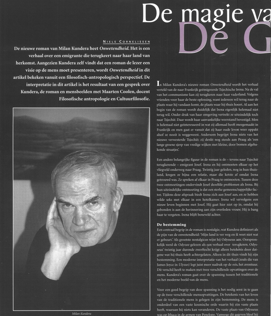 Aankomende september bestaat Babel 30 jaar, wat we niet zomaar voorbij willen laten gaan. In aanloop naar het jubileum wandelen we door de gangen van De toren van Babel – duiken we in het archief – om zodoende elk nummer een stuk dat we tegenkomen te herdrukken. Deze maand een stuk over conflicterende mensbeelden in de roman Onwetendheid van Milan Kundera. Geschreven door Niels Cornelissen in april 2002.