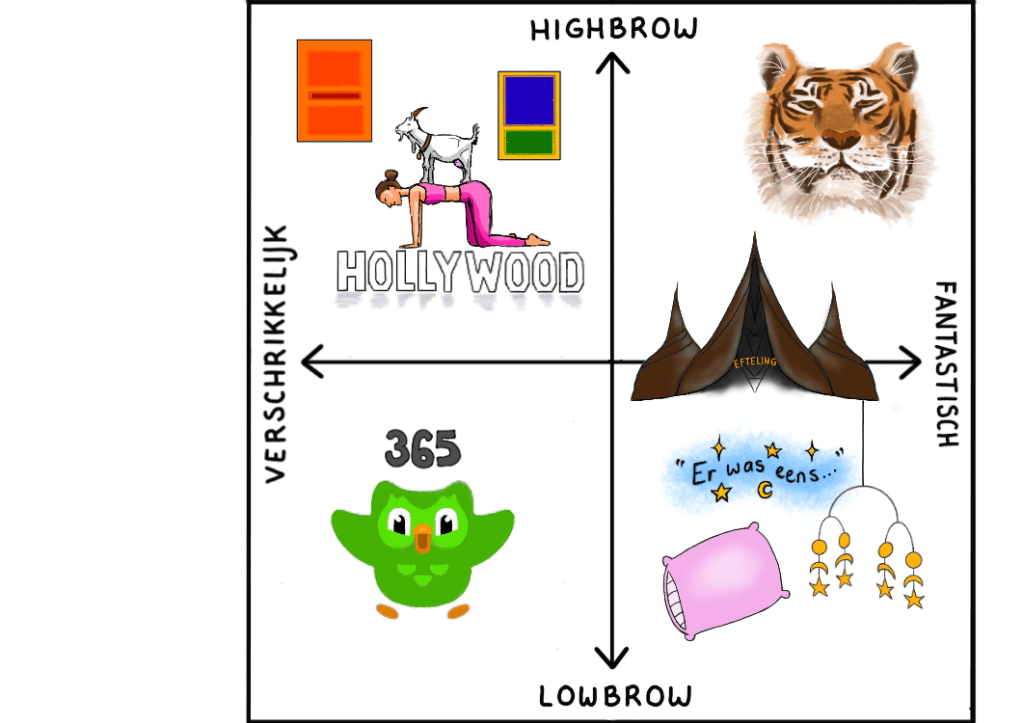 Verbeelding is een van de krachtigste menselijke eigenschappen. Ze kan ons vervoeren naar nieuwe werelden, ons motiveren of een alternatieve werkelijkheid schetsen. Toch lijkt verbeelding in sommige gevallen eerder beperkend, en kunnen de voorgekauwde beelden van de ander onze eigen verbeeldingskracht in de weg staan. Onze redactie is deze maand weer ingezet om alle vormen van verbeelding voor jullie op een rijtje te zetten.Er was eens een klein dorpje, hier ver vandaan. In een boerderij op een mistige heide wordt de geit iedere ochtend wakker gemaakt door het gekrijs van geblondeerde vrouwen. Elke ochtend hoopt de geit zijn rust te vinden, totdat hij wordt gegrepen door een vrouw in een roze gymshark kostuum. De geit vraagt zich nog altijd af wat de link tussen geiten en yoga is. Het is nog nooit wetenschappelijk bewezen dat je meer zen wordt als een geit staat te mekkeren op je rug. Een geit op de rug van een geblondeerde vrouw spreekt natuurlijk wel erg tot de verbeelding, maar uiteindelijk is het niets meer dan zielig voor het dier. Niet minder zielig is de bioscoopliefhebber die weer eens wordt omgepraat om naar de biopic van nog een Hollywoodster te gaan. We worden overspoeld door biopics zoals over Bob Dylan, Leonard Bernstein, Elton John en ga zo maar door. Wat is er zo leuk aan het verhaal van een toch al dood persoon steeds opnieuw te vertellen? Naast een slecht gecast acteur, een menigte boze fans en een hoop verloren tijd en geld levert de biopic ons niets op. Acteur Jacob Elordi lijkt niet op Elvis Presley, ook niet met zwart haar. Hier maak je zowel de Euphoria– als de rock & roll fans niet blij mee. Wie behoefte heeft aan een korte muziekgeschiedenis duikt de boeken wel in, zo wordt er tenminste nog wat aan de verbeelding overgelaten. Wat nog beter is dan een boek lezen, is naar de woorden luisteren. Liggend in bed, met je pyjama aan en een voorlezer naast je, kan je je eigen verbeelding de vrije loop laten. Je kleine vuistje wrijft tegen je ogen aan. De stem van je ouder wordt de gids naar andere werelden. Je zicht wordt steeds minder scherp en de woorden veranderen in een zachte ruis. Wat was het toch een fijne tijd, toen literatuur enkel over vliegende dieren kon gaan, en niet over drugsverslavingen of doorgedraaide pedofielen. Maar de échte literaire meesterwerken geven nog wel ruimte voor verbeelding. In het Arabisch werk Tien Dagen van de tijger van Zakaria Tamer smelten poëzie, een fantasiewereld – waarin een tijger plots kan praten – en de nauwe realiteit samen tot een tragisch protestwerk. Zonder verbeelding kun je je ook geen betere wereld voorstellen. Conceptuele kunstenaars hebben deze uitspraak echter iets te letterlijk genomen. Wie weleens is gedwongen een kwartier naar een blauw doek te staren en het kunstzinnige erin zien, snapt wat hier bedoeld wordt. Hoewel de doeken van Mark Rothko wellicht inspiratie op kunnen doen voor het aanschaffen van een nieuw tafelkleed, doen de kunstwerken verder niemand goed. De museumganger hoort niet overmatig zijn best te doen om het kunstzinnige van de kunstwerken in te zien. Het liefst wordt de betekenis van de kunst je op een presenteerblaadje aangeboden, zoals in het huis van de Vijf Zintuigen in de Efteling. Of we dit huis als kunst kunnen beschouwen, staat nog ter discussie. Maar in elk geval is het hier duidelijk wat je te wachten staat. Geuren, smaken, attracties en geluiden. Je beeldt je een andere wereld in, zonder dat je je best hoeft te doen om je deze wereld voor te stellen. Wat in elk geval duidelijk is, is dat we de verbeelding niet kunnen verliezen. Waar dat wel kan, is in de overvloed van jaarlijkse overzichten. Van je meest beluisterde artiesten op Spotify en je aantal minuten op Duolingo, tot je bestellingen bij Starbucks en je lievelingsaankopen in de supermarkt: alles wordt bijgehouden in een wrapped. Verbeelding is veelzijdig, kan ons motiveren of juist delulu maken. Toch kunnen we de verbeelding niet links laten liggen. De kracht van verbeelding is juist de kracht om je voor te stellen hoe het leven van je lievelingsartiest was, wat je lievelingsdrankje bij Starbucks was, en hoe de wereld in de toekomst vooruit kan gaan. Soms is het beter iets niet te weten, de vrije geest zijn gang te laten gaan en op onze eigen verbeelding te vertrouwen.